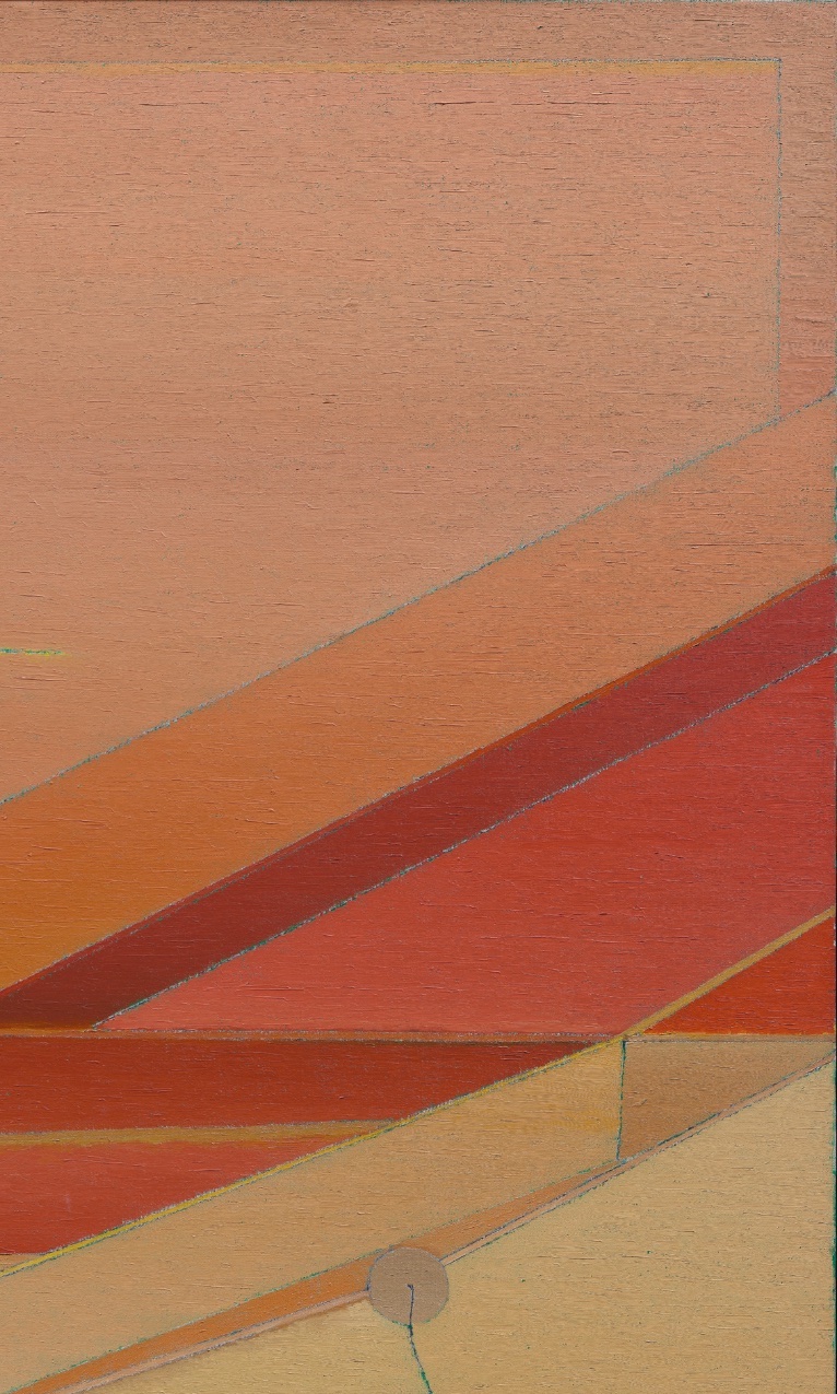 Her paintings rarely settle into clear figuration, yet they resist pure abstraction. Forms are positioned, recalibrated, and held in suspension against modulated grounds that gather depth through thin veils of paint. Color is built incrementally; soft gradations dissolve rather than assert themselves within Ito’s linear outlines. The surface records revision. What emerges is not narrative but architecture— a careful orchestration of contour, interval, and restraint.
