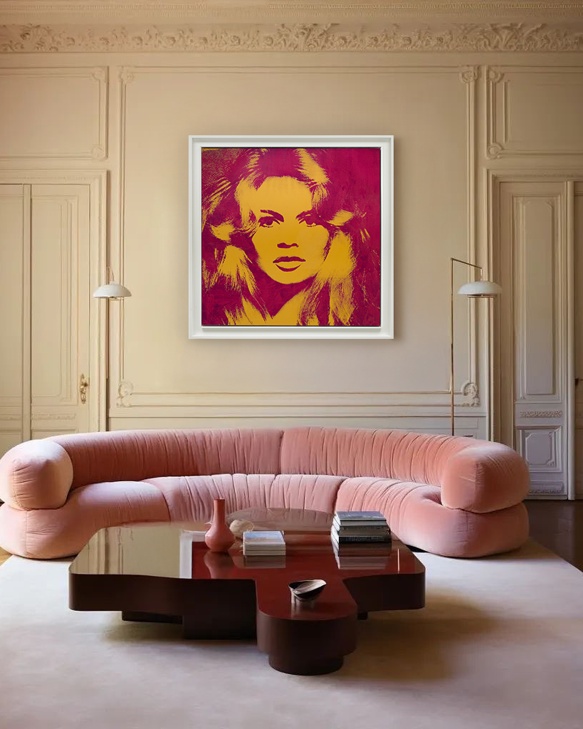Warhol came out of his short-lived retirement to complete the series of eight portraits which was delivered in 1974, two years after completing the other commission portraying Sachs himself (using a Jay Ullal photograph for the record). It is hard to imagine the glamour-hungry Warhol passing on this Avedon-Bardot-Sachs Holy Trinity served on a silver platter. The Avedon portrait, by its symmetry and distinct game of shadows and exposures, felt Warholian to begin with, but like a utopic collaboration, Warhol almost picked up where Avedon left off, perfectly framing and accentuating the elements that were already present. The sensuality of her lips, the thickness of her mane, and the depth of her eyes; Bardot's portrait is as mesmerizing as it is unattainable.